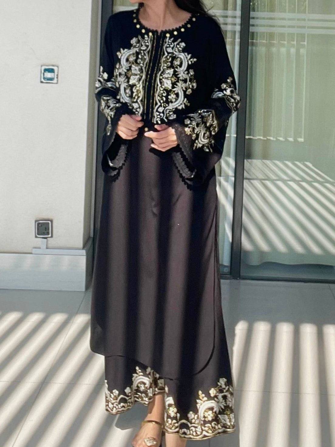 - Detailed with intricate block prints in a rich plum hue for a timeless, elegant look.