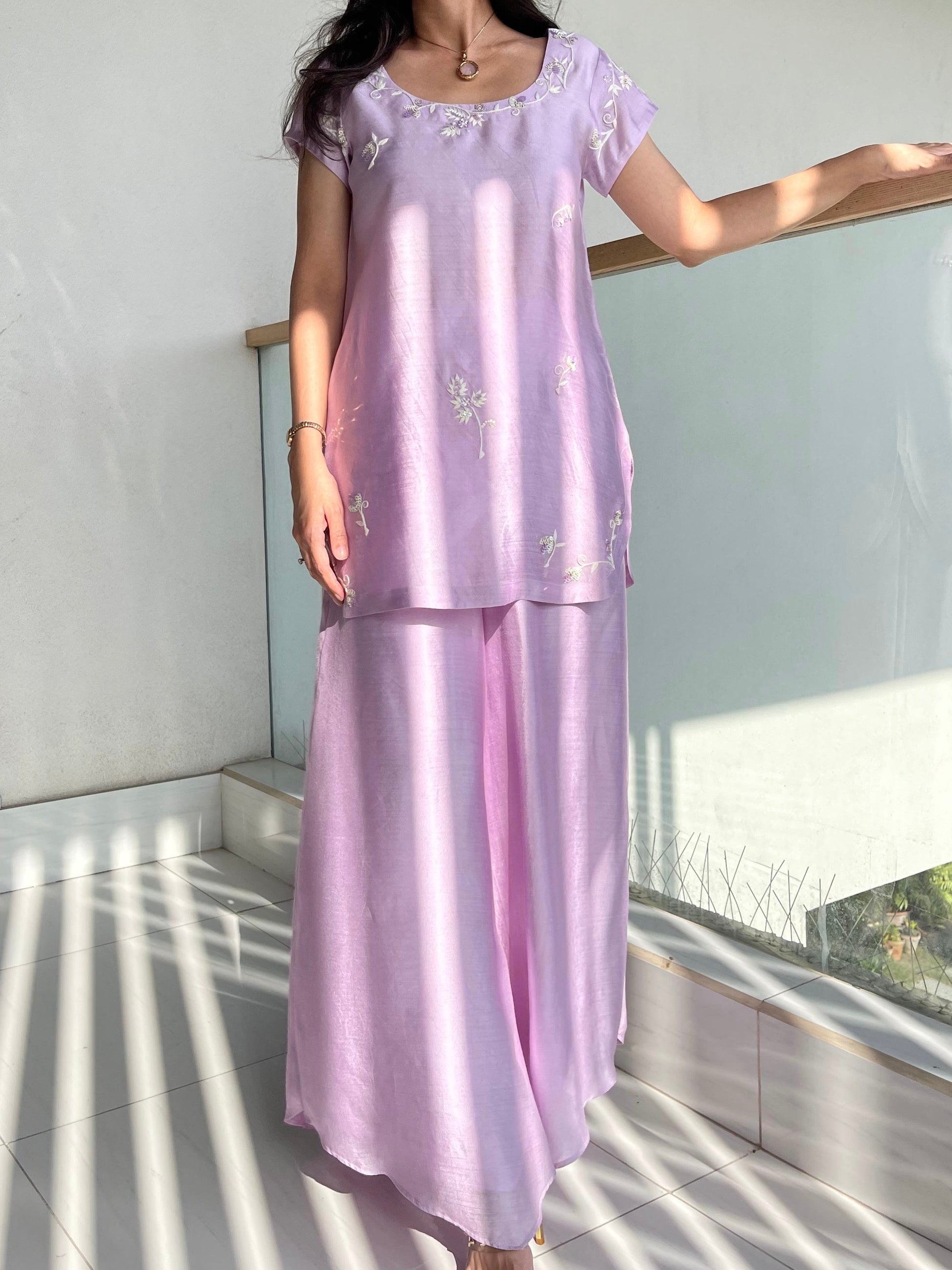 • The silhouette pairs a clean, easy kurta with breezy, wide palazzo-style trousers, designed to move beautifully with the body.