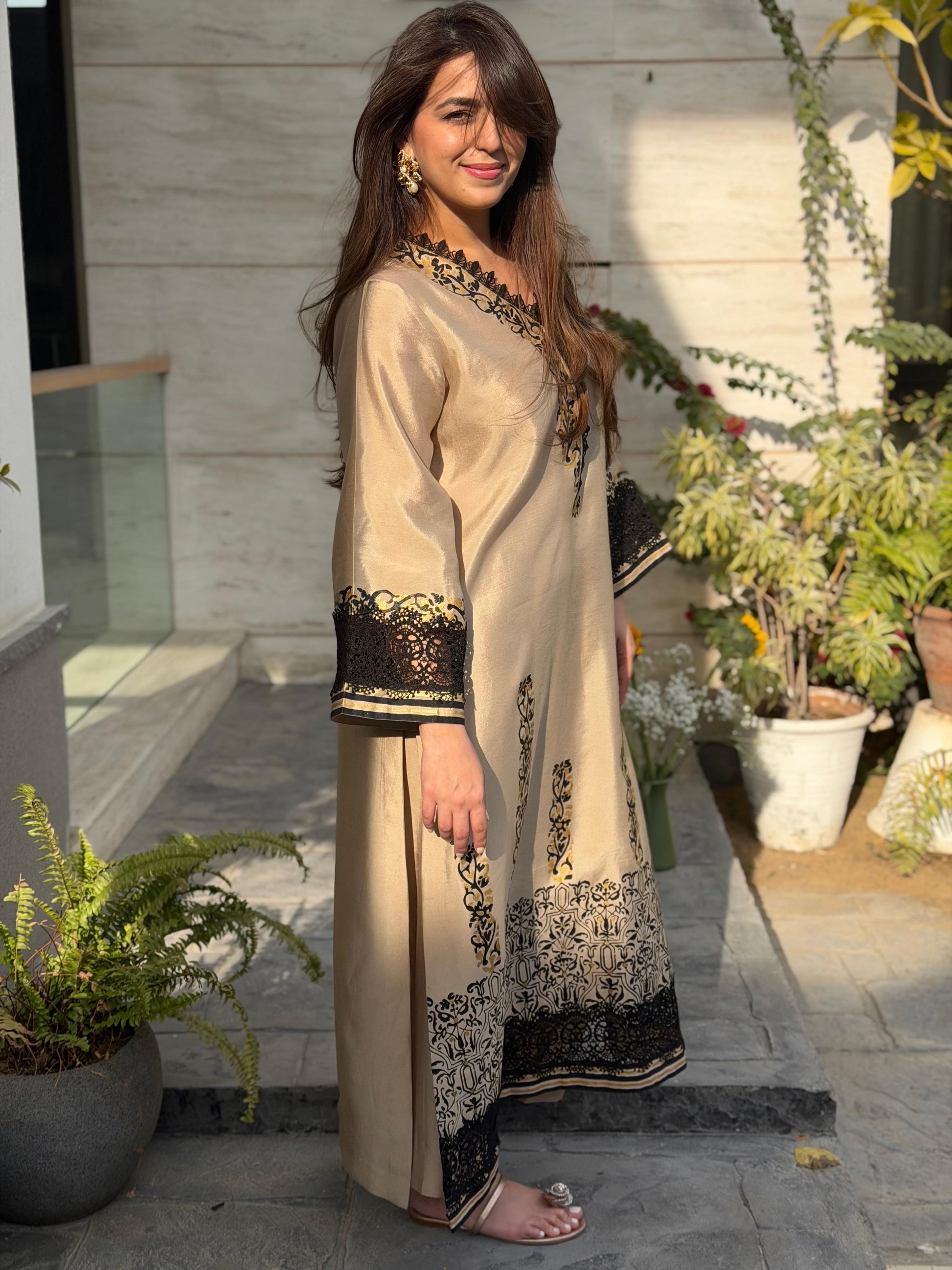 • Luxury pret kurta crafted from premium shisha silk, offering a lightweight drape with a soft, elegant sheen for a refined finish.
